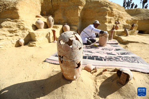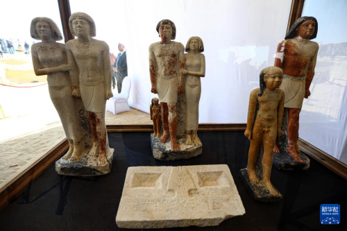 这是1月26日在埃及塞加拉地区考古发掘现场拍摄的出土文物。