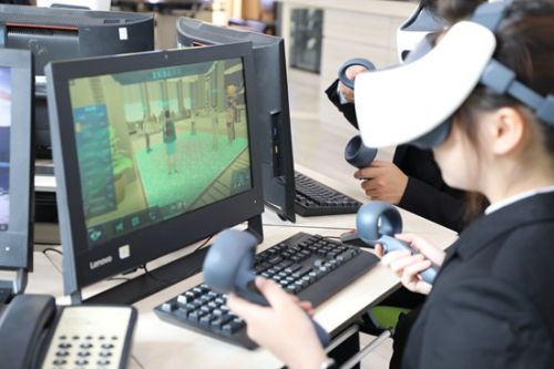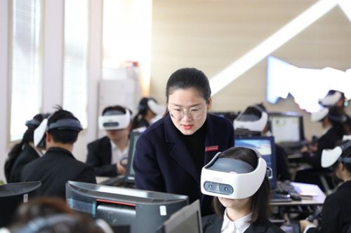 学生们正在进行VR实训。江西旅游商贸职业学院供图