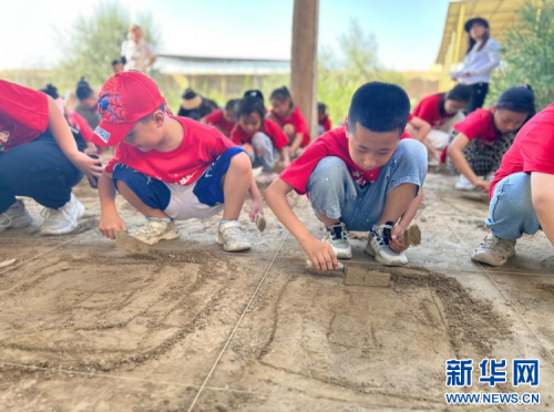 孩子们现场体验考古发掘。新华社记者艾福梅摄