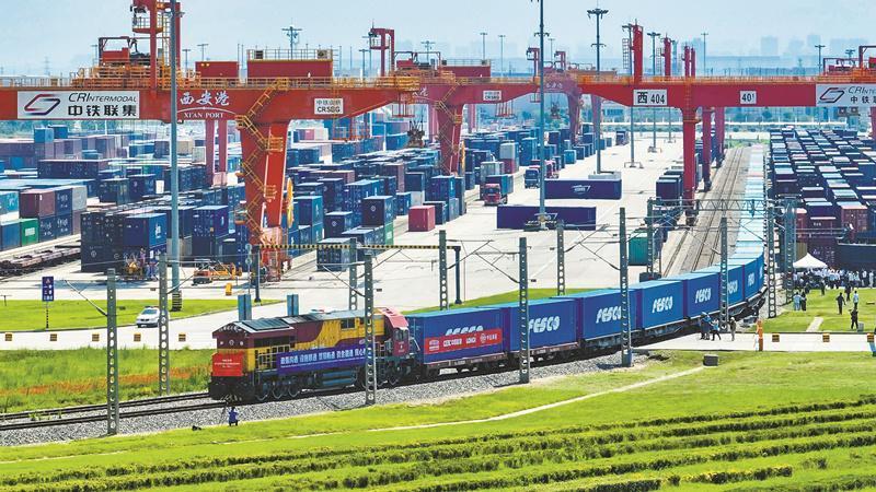 在西安国际港务区,每天发出的数十列中欧班列长安号,“牵引”着陕西更加深度地融入共建“一带一路”大格局。 受访者供图