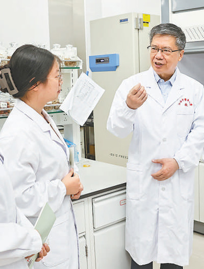 江西中医药大学刘红宁教授(右)在指导研究生做科研。