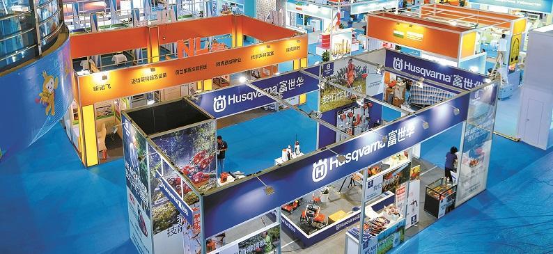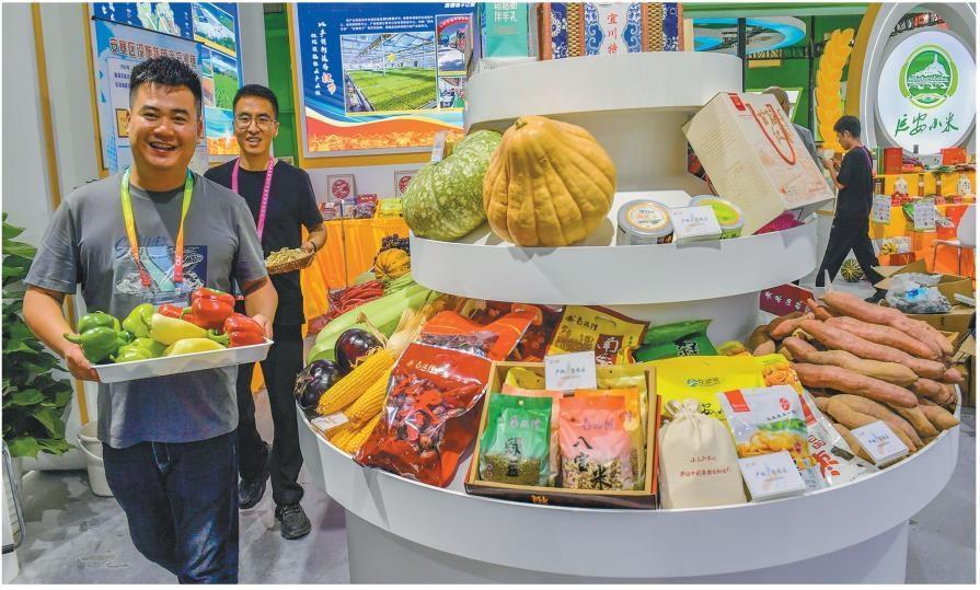9月18日,在第三十届杨凌农高会展馆内,参展客商正在布置展台。 记者 袁景智摄