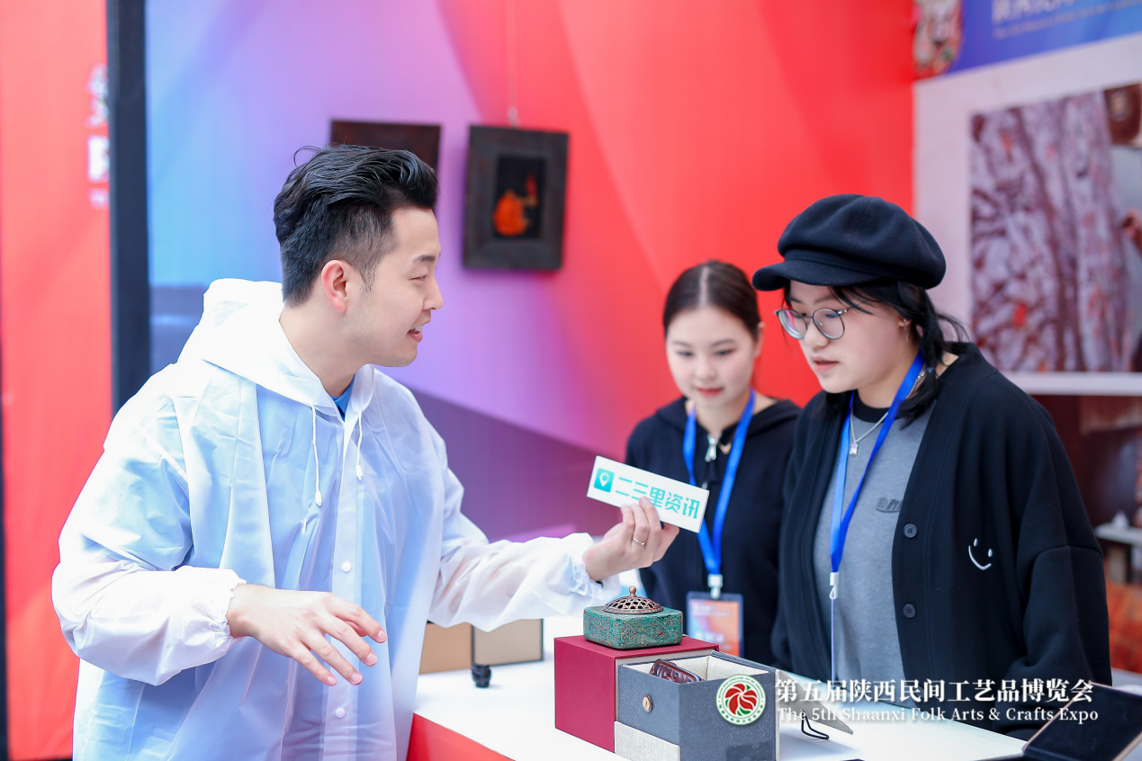 第五届陕西民间工艺品博览会名匠云集、百工荟萃,国家级、省级、市级工艺美术大师、非遗传承人潜心创作的数千件艺术精品在西安文化街区兴善寺西街集中亮相,陕北彩塑、西安鼓乐、秦绣、咸阳茯茶、华县皮影戏、长武社火脸谱、凤翔泥塑、凤翔草编技艺、安塞剪纸、旬邑彩贴剪纸等约40个种类的陕西民间艺术品进行展出,以展搭台不仅推动陕西文旅项目消费,也推动了民间工艺不断适应产业市场发展,更加推动民间文艺与中华优秀传统文化传承双向赋能,是弘扬中华优秀传统文化、培育民间艺术市场一次精品盛宴。