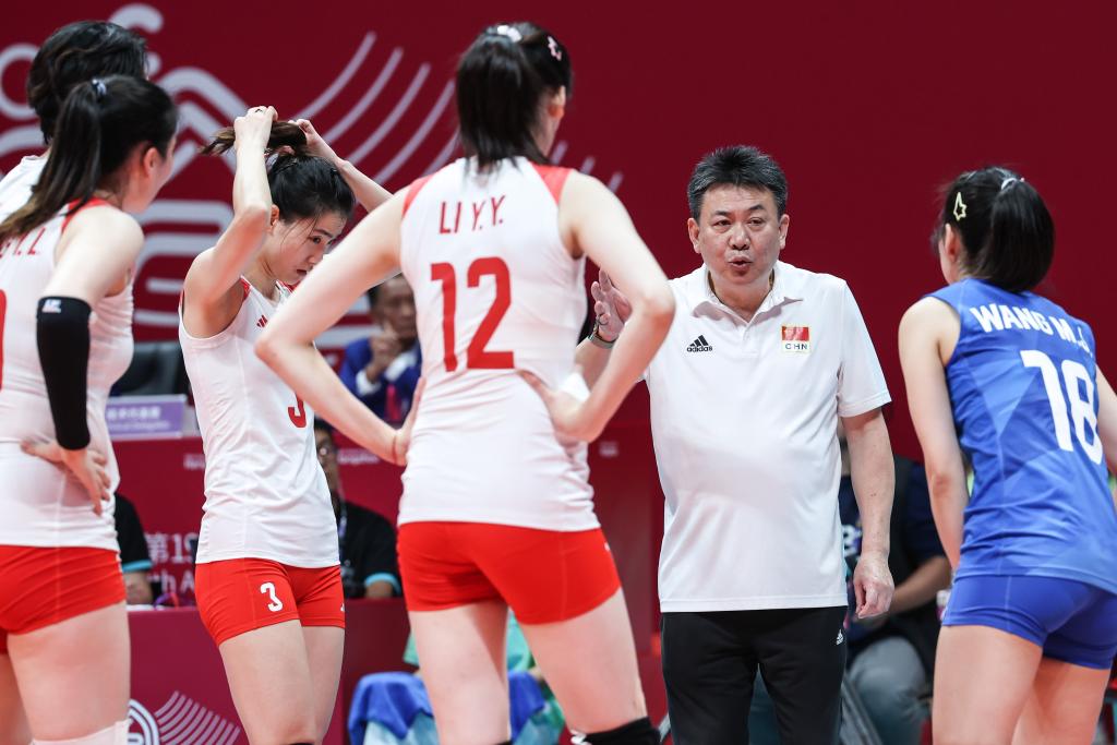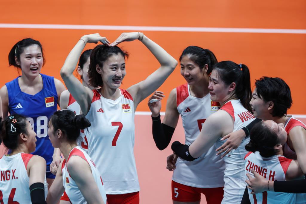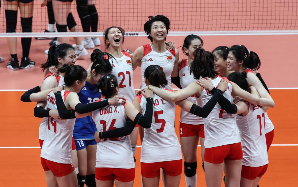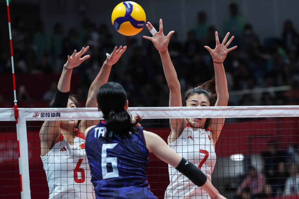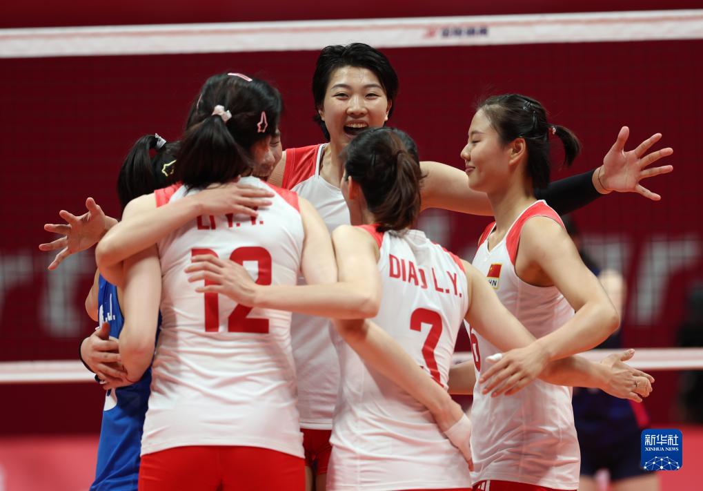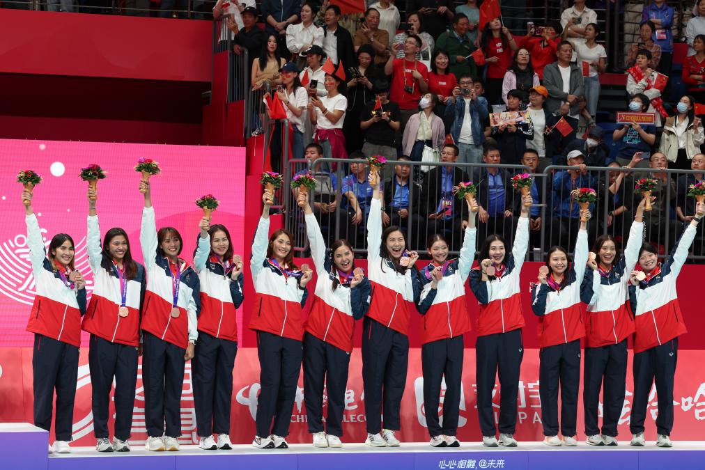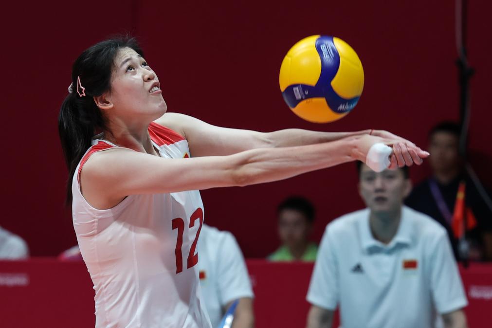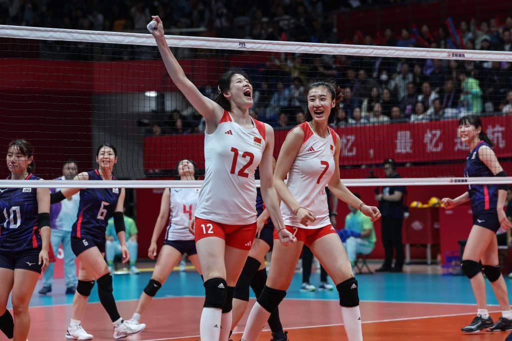 当日,在杭州亚运会女子排球决赛中,中国队以3比0战胜日本队,获得冠军。