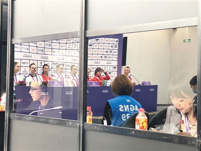 从游泳到跳水,从马拉松游泳再到花样游泳,每一次更换项目,对同传译员来说都意味着把前期准备工作再做一次。新领域、新术语、新资料,每一场十几分钟的新闻发布会背后,凝结着同传译员在台下的大量案头准备工作。“翻译竞赛项目最多的一名同事,前后经历了16个项目,近乎每天换一个,每天没有太多时间睡觉。用他自己的话说‘不是在查资料,就是在看比赛和翻译新闻发布会’。这就是我们的工作常态。”祁美静说。