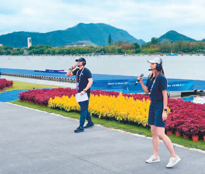 为了这次在家门口举行的盛会,季晓岚详尽学习了赛艇、皮划艇静水和激流回旋3个项目的竞赛规则。进驻赛场后,她走访了中国香港队、印度尼西亚队。“我了解到在赛艇项目上,这两支队伍的队员为了备战杭州亚运会两个轻量级项目,从4年前就从饮食和训练方面做准备。在赛前训练日,我还问他们来杭州的感受和体验,希望在现场评论时穿插一些他们的故事。”季晓岚说。