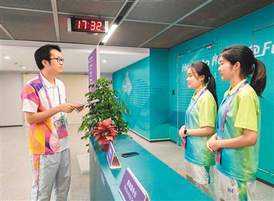 杭州亚运会手球比赛激战正酣。场馆的信息服务台前、媒体工作间里,总能看到简继文忙碌的身影。作为场馆运行团队的一员,盯紧接待流程、把控服务细节,是他每天的重要工作。