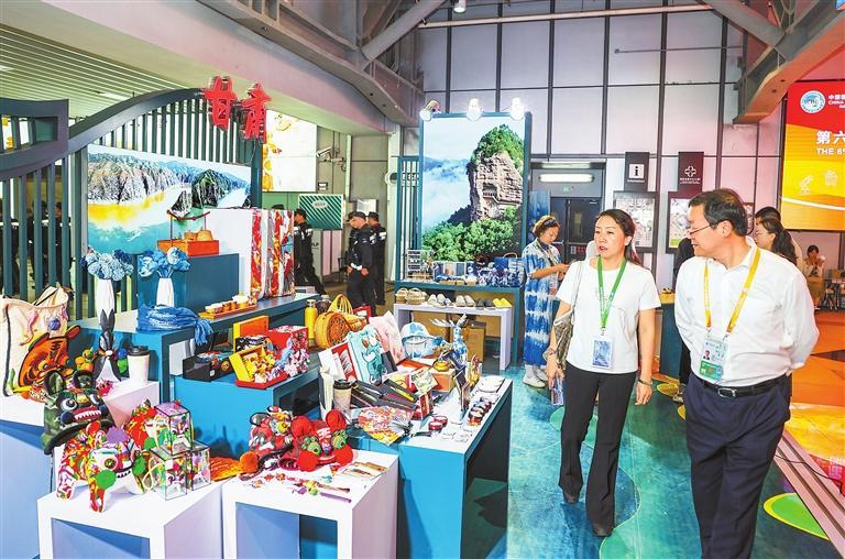 为更好推动优秀传统文化创造性转化、创新性发展,全面展示甘肃省非遗、文创最新成果,推动文旅贸深度融合,我省以“交响丝路·如意甘肃”为主题,在进博会人文交流展区搭建甘肃省展区,展示兰州黄河铁桥、天水麦积山、平凉崆峒山、九色甘南扎尕那、张掖七彩丹霞、嘉峪关关城、陇南官鹅沟等甘肃省热门景区图片,全方位立体式向与会嘉宾展示甘肃厚重的文化底蕴和丰富的旅游资源。 (新甘肃·甘肃日报记者蔡文正)