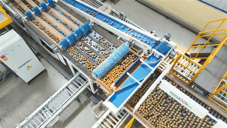 今年“双11”期间,陕西金桥果业有限公司产品分选车间内,自动分选系统正在分选猕猴桃。 通讯员 张祺摄