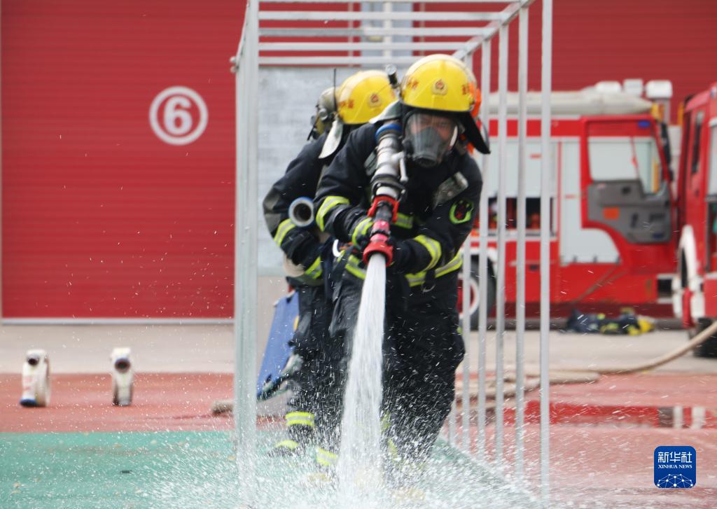 宝塔消防救援站消防员开展纵深灭火救人操训练(资料照片)。 新华社发