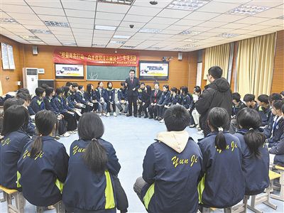 近日,湖南省衡南县人民法院少年法庭干警走进衡南县云集联合学校开展防范电信网络诈骗普法宣传活动。法官通过以案释法的方式向学生讲解了刷单返利、虚假网络投资理财、“校园贷”、虚假招聘、虚假购物、网络游戏虚假交易等侵害青少年合法权益的多发高发电信网络诈骗案件。图为法官和学生们在校园屋场恳谈会上进行互动。