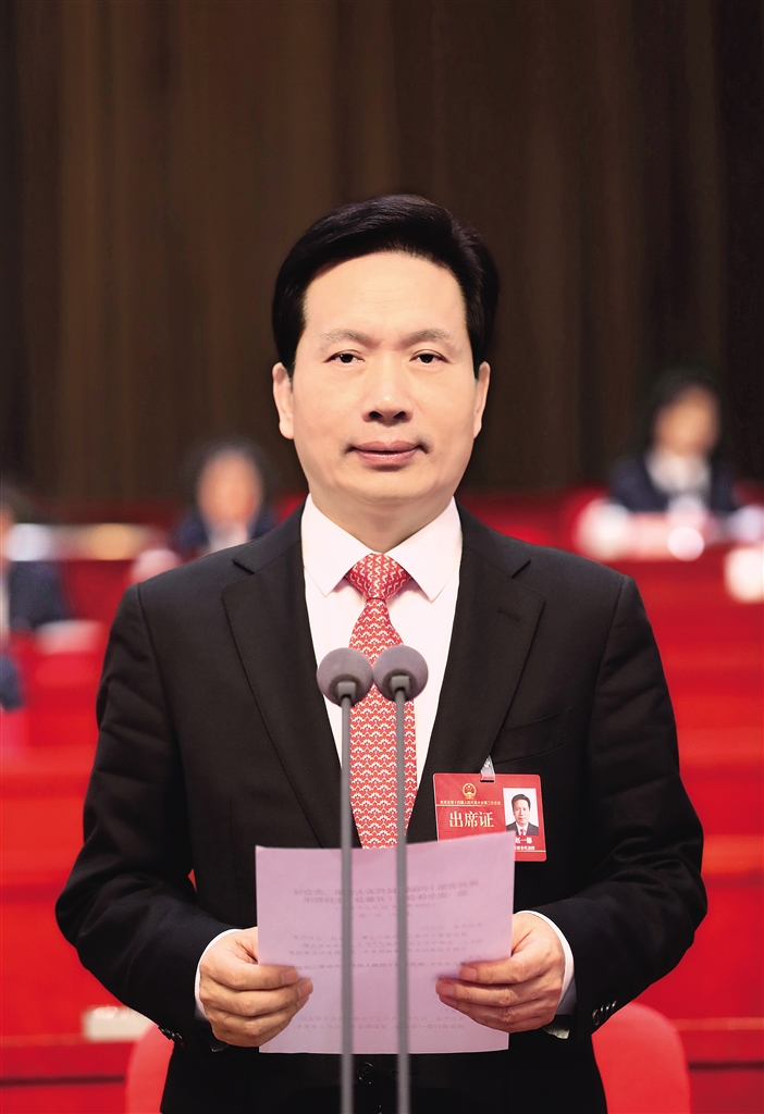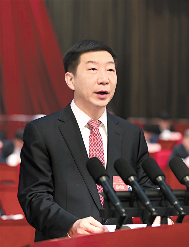 在热烈的掌声中,赵刚代表省人民政府作工作报告。报告共分三个部分:一、2023年工作回顾;二、2024年工作总体要求和预期目标;三、2024年重点工作。