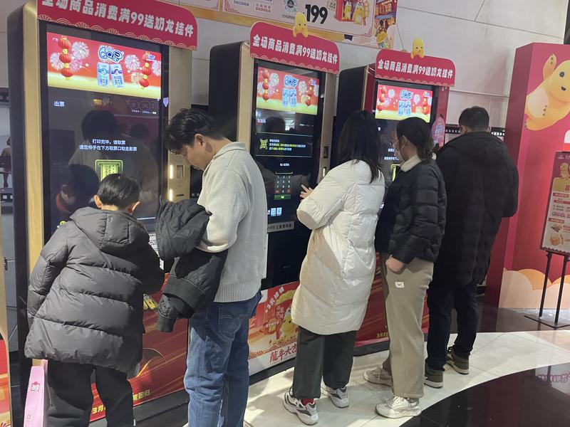 影院值班经理陈昱江介绍:“今天是春节收假第一天,观影人数虽有所下降但仍接近3000人次。《热辣滚烫》《飞驰人生2》《熊出没·逆转时空》《第二十条》四部影片票房依旧保持很好的上升态势。”