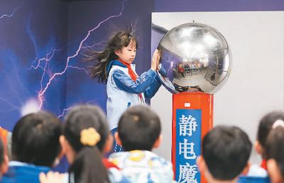 春季新学期开学以来,福建省福州市鼓楼区聚焦学生科技创新素养培育,通过组织各学校开展丰富多彩的“开学第一课 感受科技魅力”主题活动,让同学们体验人工智能、工业互联网、大数据等新质生产力带来的科技变革成果。图为近日鼓楼区安泰街道斗南小学的孩子们走进福建省科技馆,近距离观摩体验科技装置,学习科学知识。