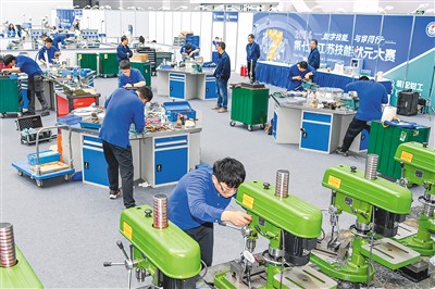 第七届江苏技能状元大赛总决赛近日在江苏省宿迁市开赛。本次大赛以“数字技能”为重点,来自全省的689名选手在人工智能训练师、工业网络智能控制技术等20个赛项中展开激烈角逐。图为选手正在比赛。