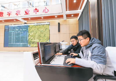 涉农产业快速发展,带动了新生产模式的兴起和更多数字人才需求。图为黑龙江北大荒农业股份有限公司友谊分公司数字农业指挥中心内,工作人员在维护大数据和物联网系统。