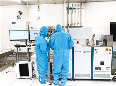 在北京航空航天大学智能微纳公共创新中心,集成电路科学与工程学院学生在对企业提出的课题进行实验研究。