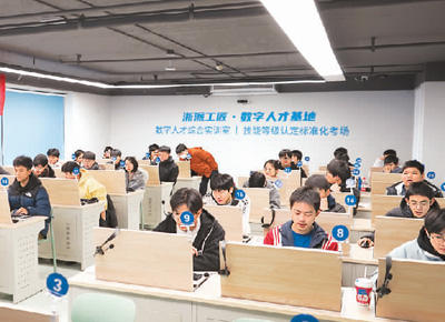 在浙江省杭州市,考生在参加人工智能训练师职业考试。