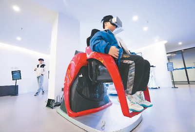 3月21日,在位于福建省福州市长乐区数字教育小镇的福州软件职业技术学院,学生在体验VR项目。