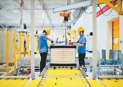 5月19日,工人在位于广东省珠海市的纬景储能珠海“超G工厂”工作。该项目是先进液流储能电池及系统的智能制造中心。