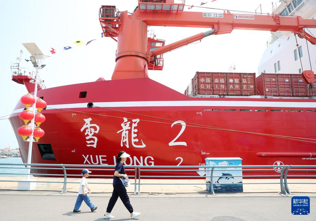 7月3日,“雪龙2”号科考破冰船靠泊在青岛奥帆中心码头。新华社发(张进刚摄)