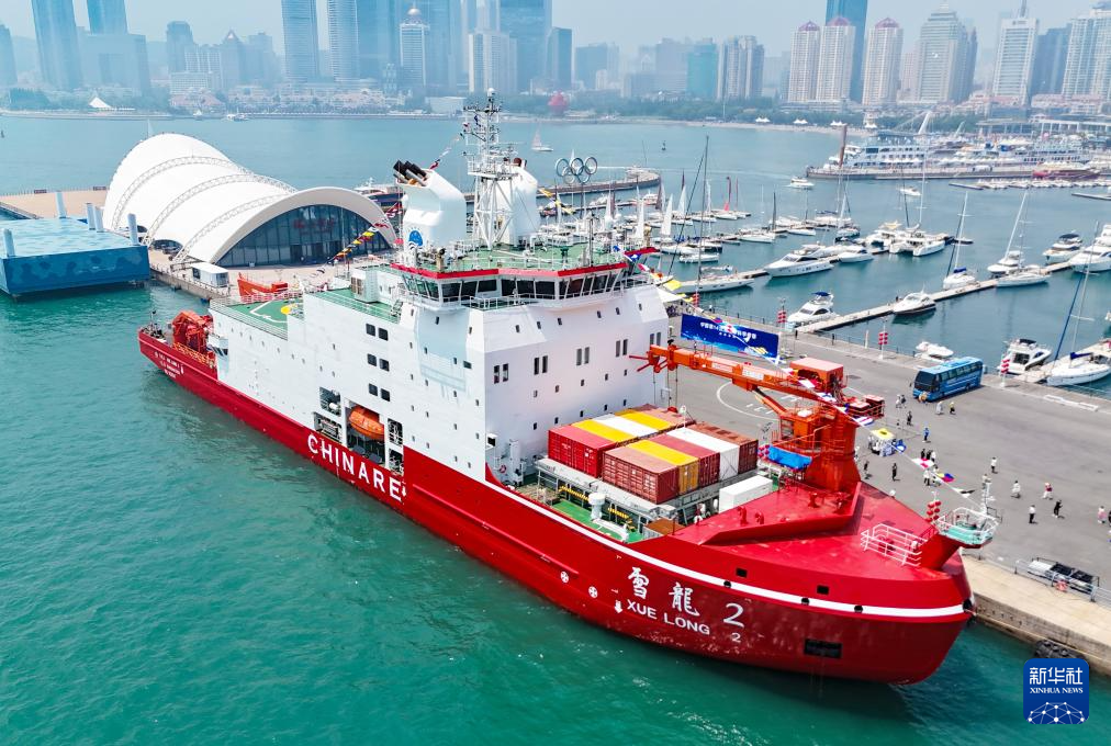一同与“极地”号亮相青岛的还有我国第一艘自主建造的极地科考破冰船“雪龙2”号。