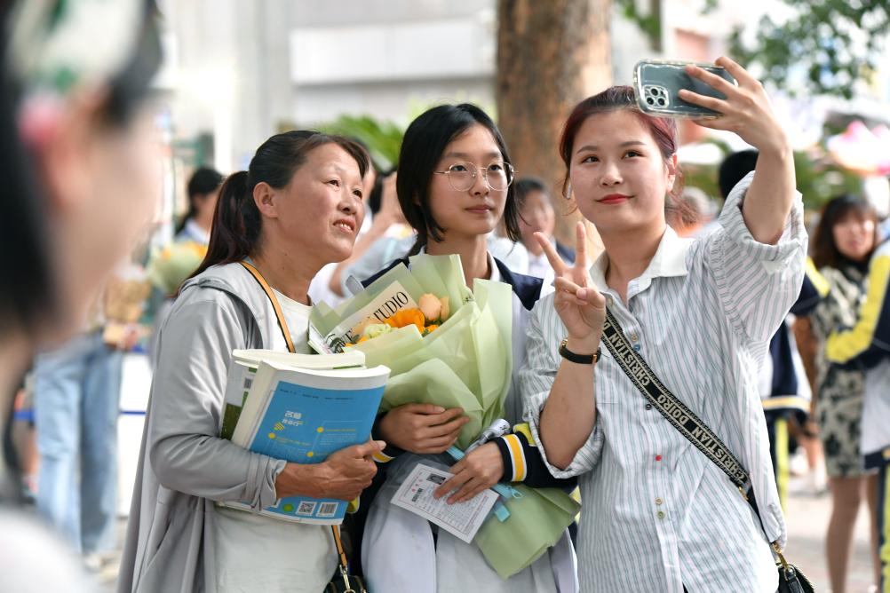 6月9日,在河北省石家庄市第一中学考点,考生和家长合影庆祝考试结束。当日,全国部分地区高考结束。新华社发(张晓峰 摄)