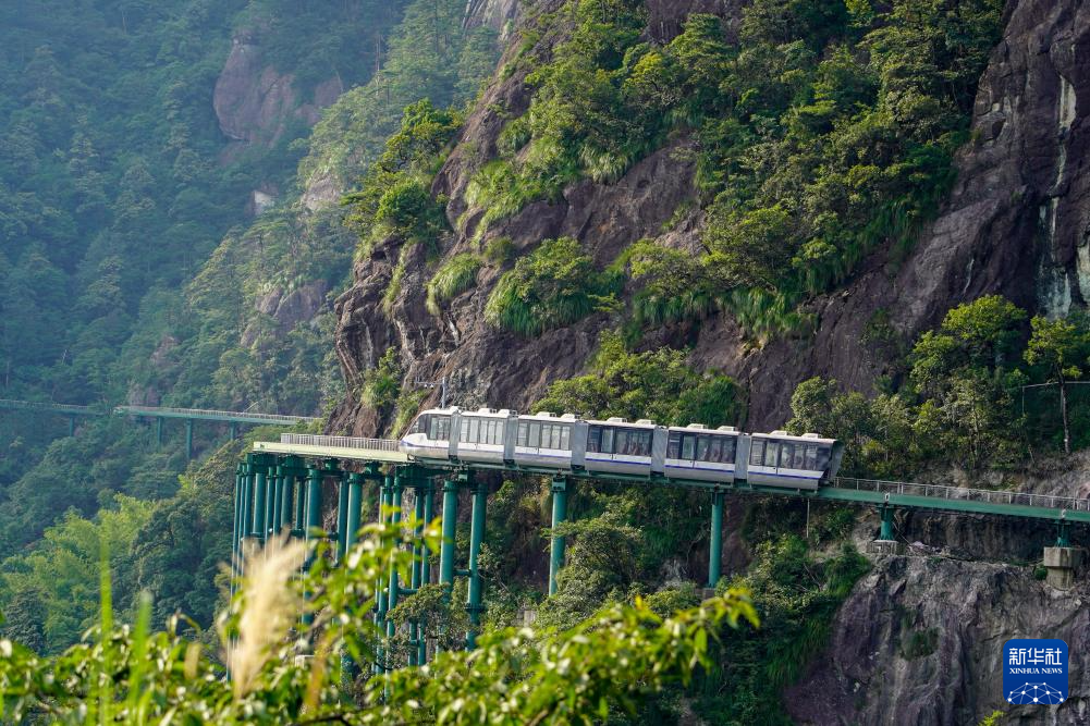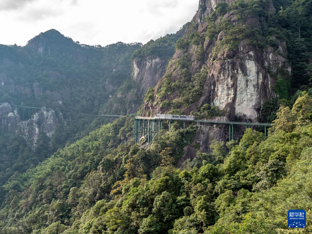 7月11日,“悬崖动车”行驶在江西大觉山景区。新华社记者 郭杰文 摄