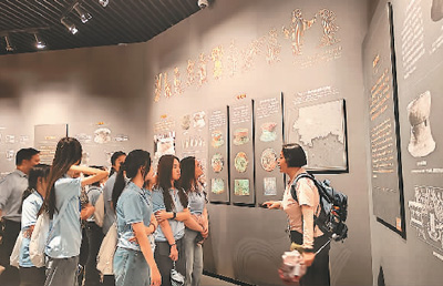 海外华裔青少年在广西民族博物馆参观。