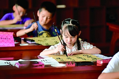 安徽合肥市,孩子们在少年宫练习书法。新华社发