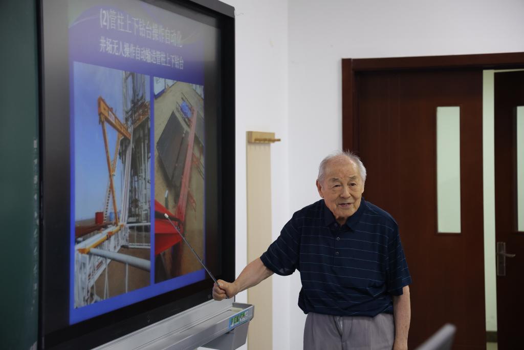 一位老人神采奕奕地为师生们讲授海洋石油装备新进展