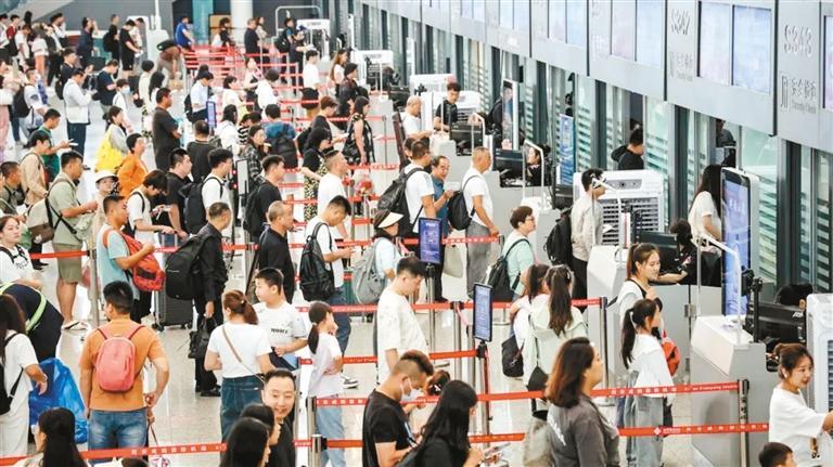 暑运期间,旅客在西安咸阳国际机场航站楼排队安检。受访单位供图