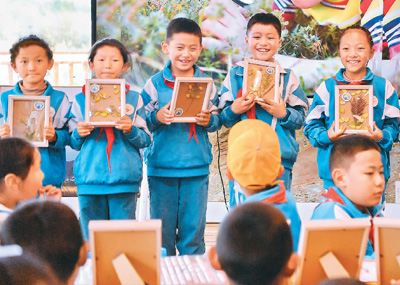 8月15日,中国科学院地理科学与资源研究所和拉鲁湿地国家级自然保护区管理局携手,组织拉萨市城关区拉鲁小学的学生开展生态科普研学活动,帮助学生开拓科学视野,增强环保意识。图为拉鲁小学的学生在展示植物标本。