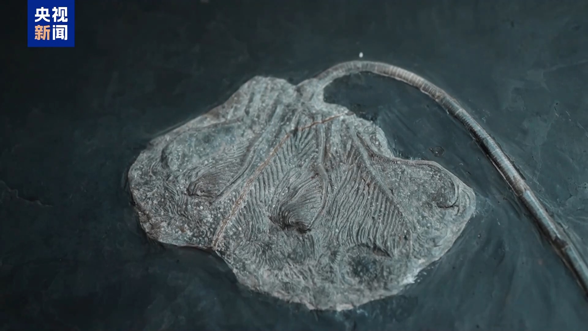 其中一个标本,很像百合花,它的名字叫“海百合”,是一种生活在海里的棘皮动物。海百合身体呈花状,表面有石灰质的壳,最早出现在距今4.8亿年前。海百合虽然体型纤弱、天敌众多,却经受住了几亿年沧海桑田的考验,可见其生命力之顽强。