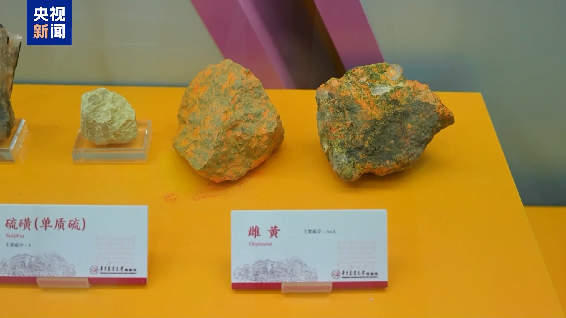 “信口雌黄”成语中的“雌黄”是什么?答案就在这个展柜里。它是一种罕见的黄色颜料,信口雌黄这个成语有不顾事实,胡诌乱说的意思。实际上,颜料雌黄在古代常被用来做文书抄写校正的涂改液,与现代社会发明的白色修正液有同样的功效。