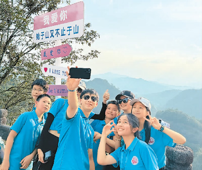 福建集结营的营员们在福建省武夷山市天游峰顶合影留念。