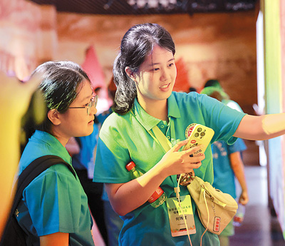 福建集结营营员在福建省泉州市非物质文化遗产馆看展。