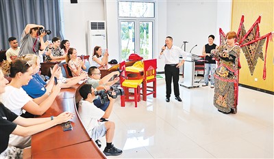 图为秦皇岛市小海燕评剧团的老师正在为留学生和国际汉语夏令营营员讲解戏曲知识。