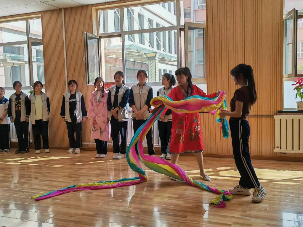 兰州市第六十四中学曹熙媛跟随崔玲老师学京剧已有四个年头,她说这门课让自己认识到艺术美是多样的。独特的唱腔、精致的服饰、讲究的妆容、动作与眼神都如云霞中的光点,给人以多重的审美体验感。