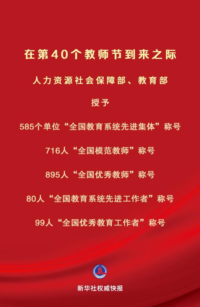 原标题:庆祝第40个教师节!全国585个单位、1790人受表彰