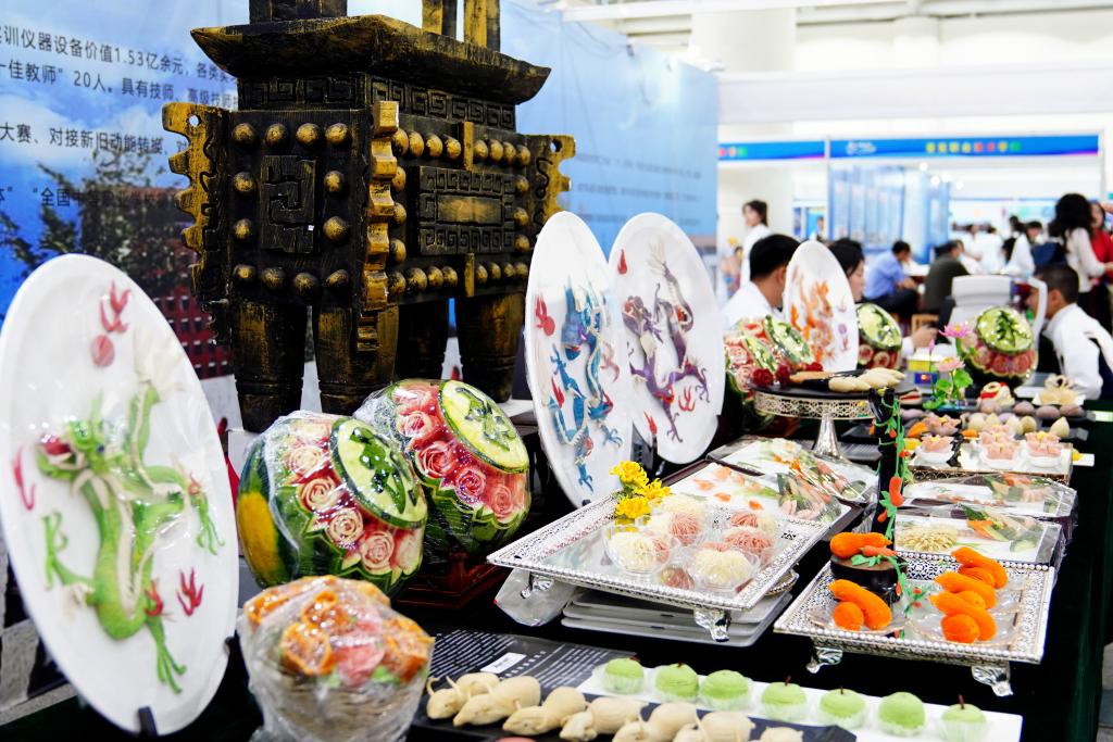 2024年5月11日,在济南舜耕国际会展中心,济南市技师学院展示师生创作的作品。新华社记者 郭绪雷 摄