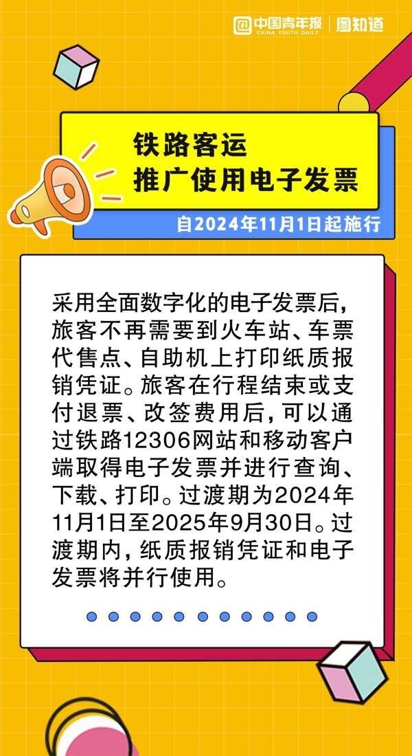 2024年11月,铁路客运推广使用电子发票、突发事件应对、电动自行车管理规范、化妆品监督检查等一批与生活息息相关的新规即将施行,一起看图了解。