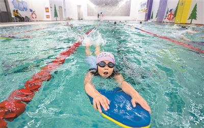 图为新余市渝水区松山小学的孩子们在游泳馆社团课上练习游泳。