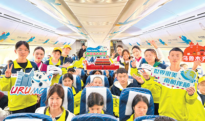 日前,南航新疆分公司从乌鲁木齐飞往北京大兴的CZ6911航班上,搭载着140名来自阿克苏地区“祖国情·中华行”新疆青少年研学班的师生。