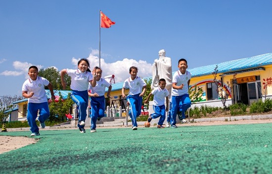 2023年5月23日,吉林,丰满区小白山乡中心小学校,孩子们在操场上玩耍。视觉中国供图(资料图片)
