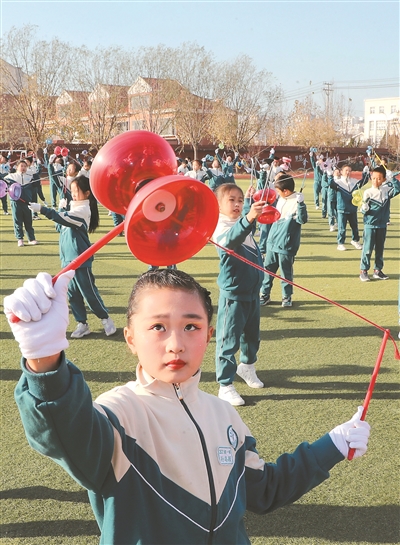 近年来,山东省东营市一些学校将抖空竹作为校本课程引进校园,利用体育课、阳光大课间开展空竹运动,让师生在享受运动乐趣的同时,了解和传承民俗文化。
