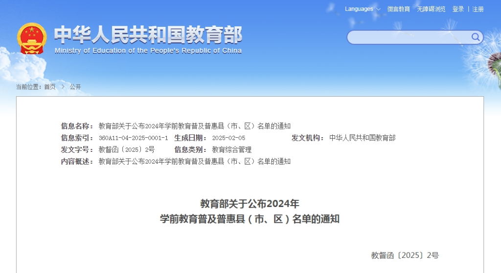 原标题:教育部认定一批学前教育普及普惠县