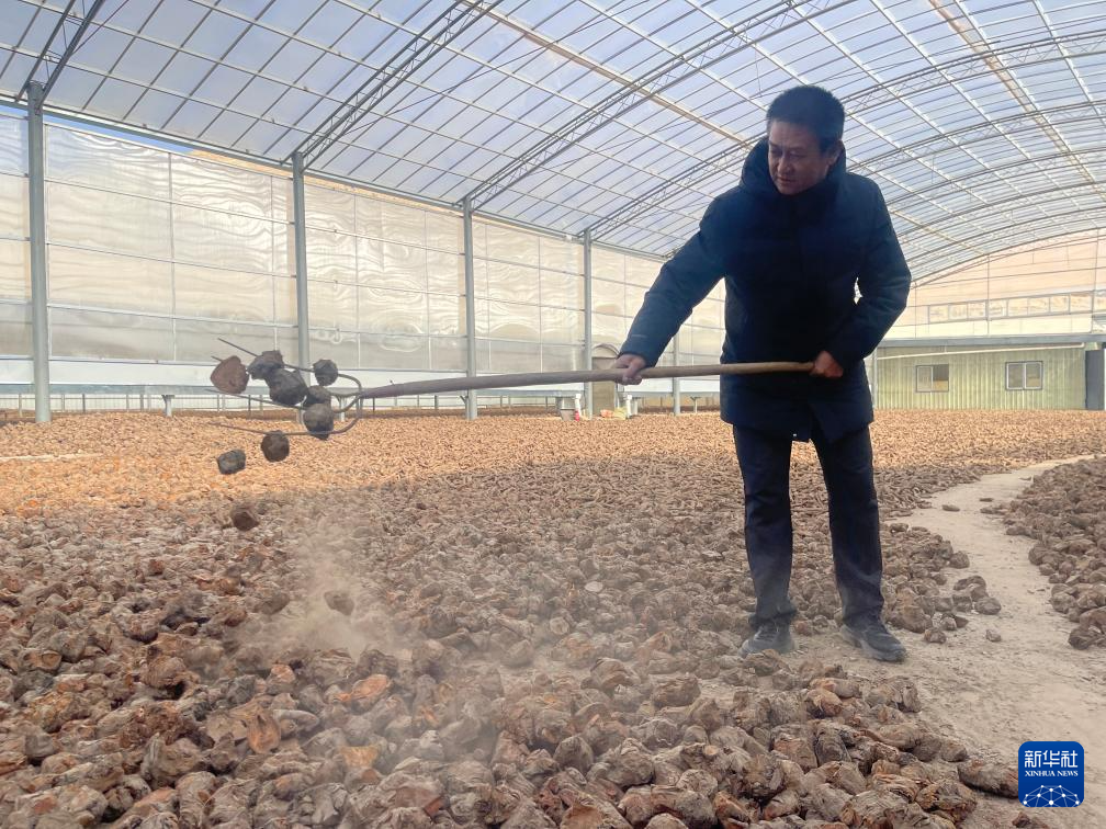 马如林在晾晒中药材。新华社记者 程楠 摄