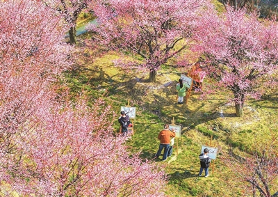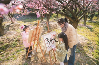 近日,浙江省长兴县龙山街道川步村梅花园内梅花陆续绽放,龙山街道中心幼儿园将美术课堂搬出教室,让孩子们在花海中写生创作,感受大好春光和家乡之美。