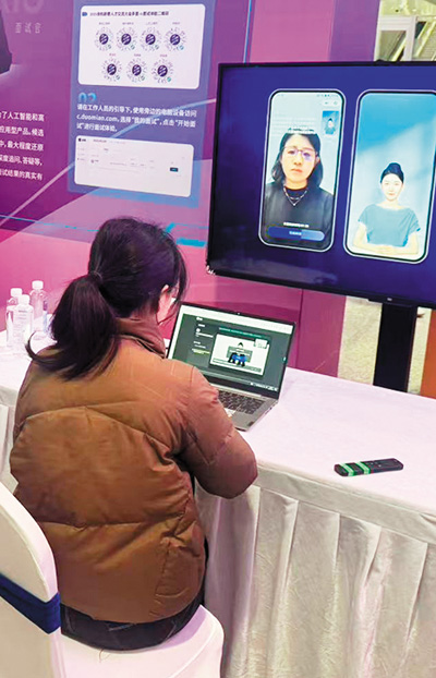 招聘会上,一名求职者体验猎聘最新AI面试产品。